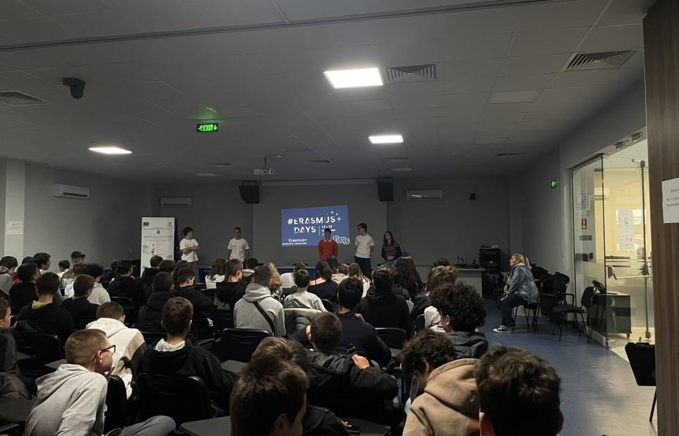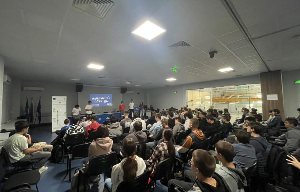 В тази среща вече единадесетокласниците, участвали с мобилност по проект проект № 2024-1-BG01-KA121-SCH-000208878, разказаха на ученици от осмите и деветите класове за тяхното преживяване по време на двуседмичната програма в Римини, Италия.