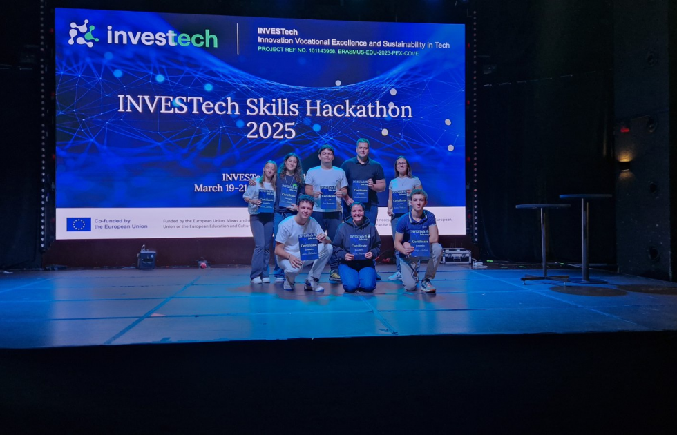 Миналата седмица в София се проведе INVESTech Skills Hackathon 2025 — международно събитие, част от европейския проект INVESTech, който подкрепя развитието на професионални и технологични умения в училищното образование. Хакатонът събра ученици от България, Гърция и Словакия, които заедно работиха над реални задачи, споделяха идеи и трупаха опит в практическа среда. Събитието беше организирано от учители и ученици от ТУЕС с подкрепата на INVESTech — нашите отбори показаха упоритост, прагматично мислене и умения за работа в екип. Участието в такъв формат развива не само технически способности, но и компетенции като решаване на проблеми, комуникация и проектно мислене.