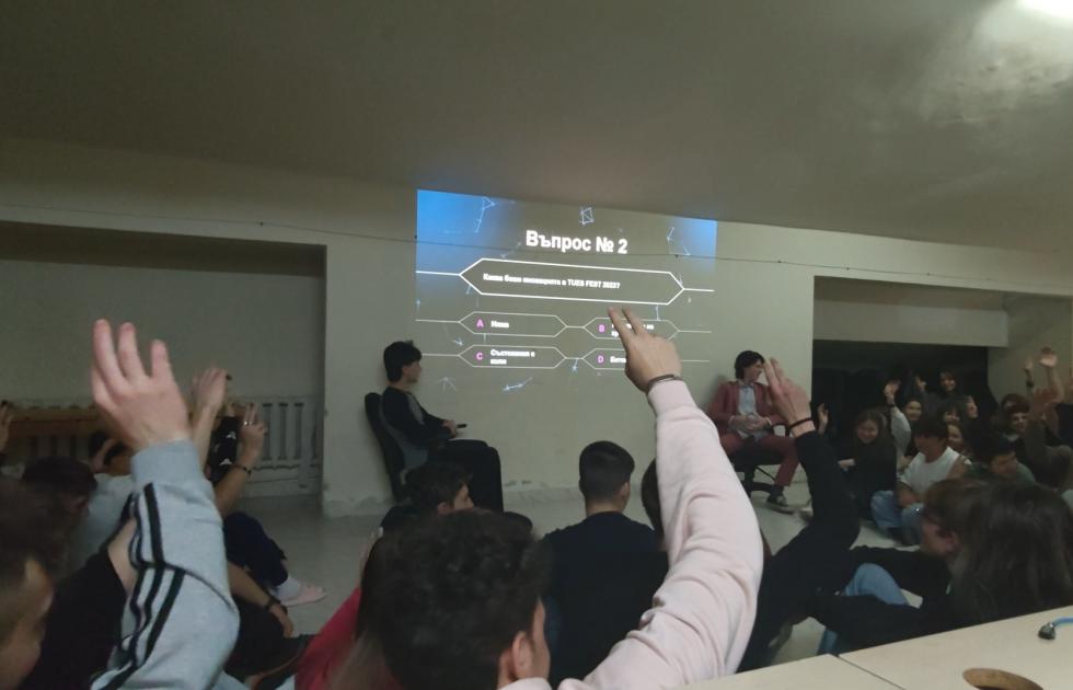 След активните дни програмата продължаваше с още по-оживени вечери. Проведоха се музикална викторина, в която учениците познаха всички песни за рекордно време, както и любимото шоу „Стани ТУЕСар“, където знанията и бързата мисъл бяха ключът към успеха.