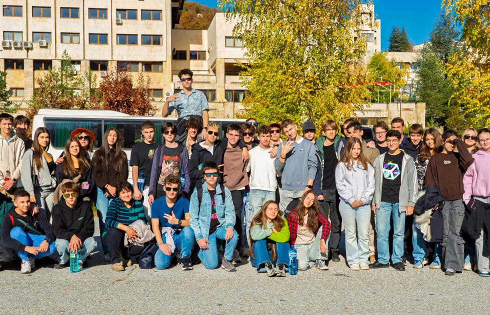Следобед потеглихме към Девин. В автобуса не липсваха песни и смях, а залезът над Родопите направи пътуването още по-красиво. След настаняване в хотела се насладихме на вечеря, а вечерта завърши с Хелоуин парти с костюми, което всички очаквахме с нетърпение.